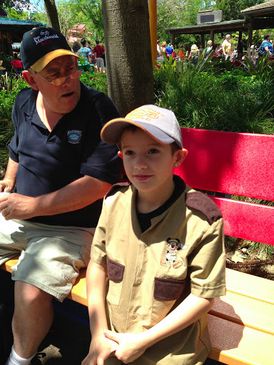 Jai was fascinated with the nile crocodiles and liked the elephants and giraffe’s who came right up to the jeep. After the safari concluded they boys set off to conquer everest for the first of five times while Jai Pop and I headed to the snakes and spiders area, Jai loves all these creepy crawlies. He picked out a safari suit to bring home to wear when he catches lizards at home, he had the shirt on most of the day. We met up again for the ‘It’s Tough to be a Bug’ 4D show, it was great as usual, they boys loved it especially when bugs all left the building… Jai finally plucked up his courage and did the dinosaur ride with the boys, it was a bit scary but he loved it.