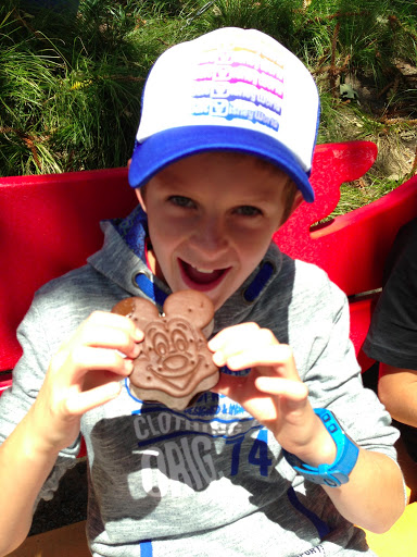 We had prime position for the afternoon parade and this up to its usual great standard. I found a table to watch the evening events and Jai sleep for a couple of hours while the boys go around the other rides and shared a cookies and cream ice-cream with Pop. I enjoyed the rest myself as we had walked miles around the park. Hotdogs all round for dinner except for me I went with the mini corn dogs (Like mini dagwood dog without stick)