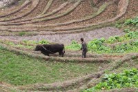 After the traditional group picture we headed back down and were lucky enough to see a water buffalo plowing one of the terraces.