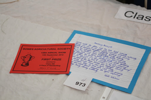 Even a class for you Ruth Reid and Judie Lordan, handwriting competition, and just quietly you both would have been in the ribbons.